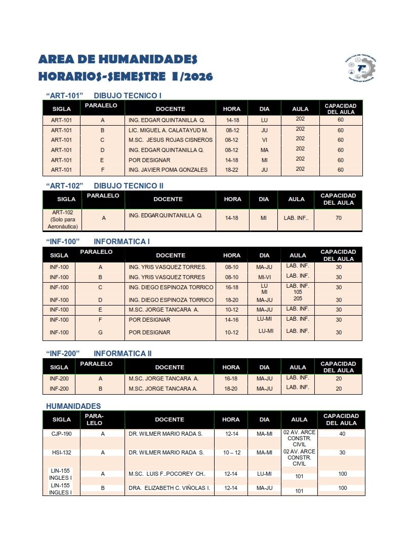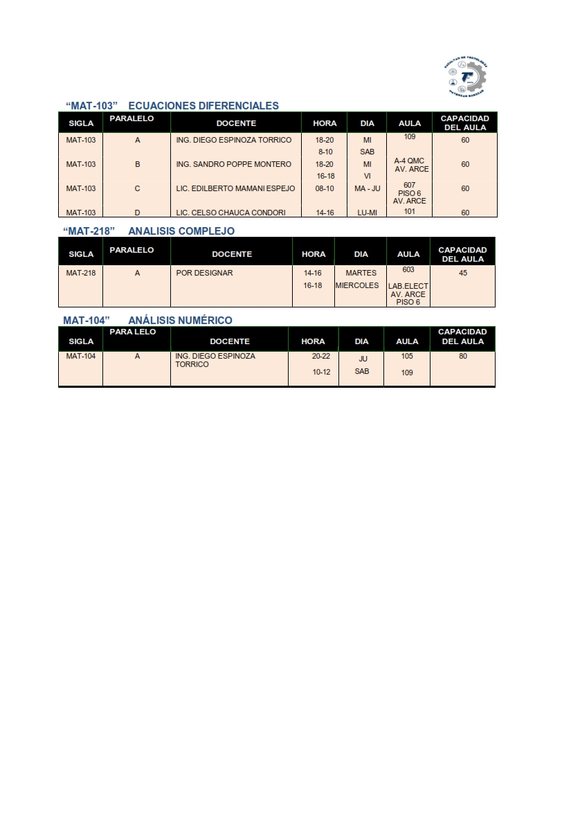 Horarios MAT-BAS - FT-UMSA