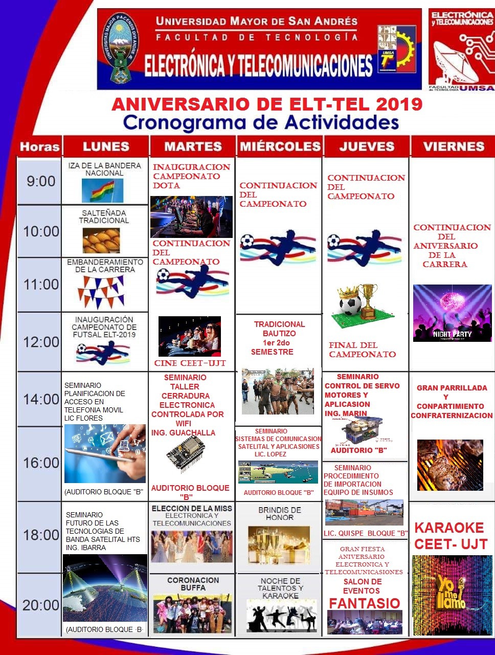 CRONOGRAMA ANIVERSARIO ELECTRÓNICA Y TELECOMUNICACIONES 2019
