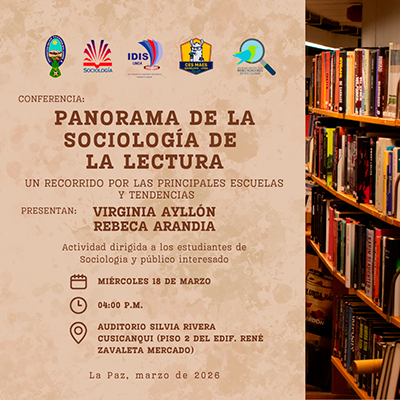 Autores, adscritos a importantes universidades del país y del exterior, firman los artículos incluidos en Temas Sociales 57, número que se presentará este miércoles 8 de abril, a las 18.00, en el auditorio Silvia Rivera de la carrera de Sociología (segundo piso del edificio René Zavaleta, segundo patio del monoblock de la UMSA). Los investigadores y docentes de Sociología, Sandra Ramos y Jiovanny Samanamud, estarán a cargo de los comentarios. Los asistentes recibirán un ejemplar de la revista.