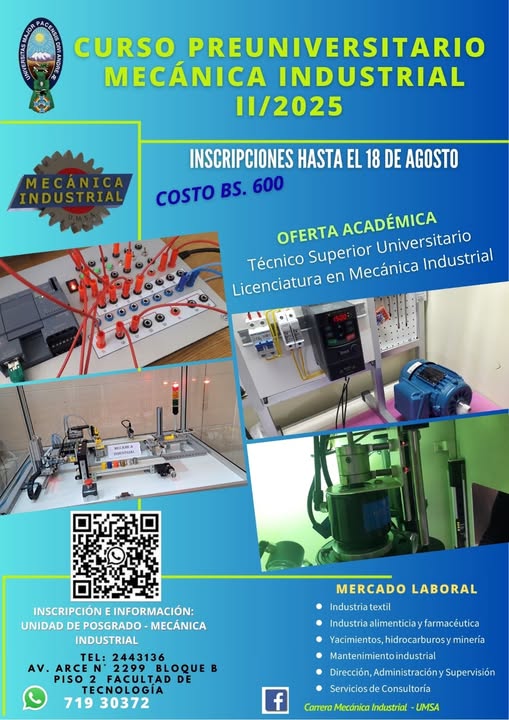 CURSO PRE-UNIVERSITARIO MECÁNICA INDUSTRIAL I/2026 - FT-UMSA
